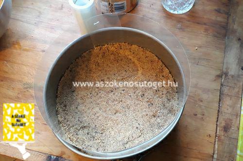 - A kekszet ledarálom és összekeverem az olvasztott vajjal. Egy 22 cm-es kapcsos tortaformát wax fóliával kibélelek és az alján egyenletesen elterítem a kekszet. Lenyomkodom és hűtőbe teszem felhasználásig.